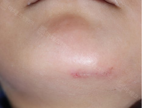 턱은 다른 부위에 비해 움직임이 많은 부위라 흉터 결과가 더 좋지 않은 경우가 많은데 다행히도 이렇게 깨끗하게 아물어 주었습니다.