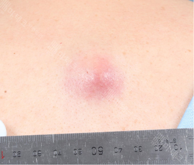 환자분께서 등 부위라 흉터가 크게 신경 쓰이지 않는다고 하여 저희 병원의 흉터 치료는 따로 받지 않으셨지만,