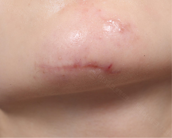 흉터 치료를 6개월간 꾸준히 받고 난 후에 촬영한 사진입니다.