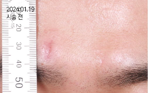 미간 부위 찢김으로 집 근처 병원에서 급히 봉합을 받으신 환자분이 3개월 뒤에도 흉터가 잘 호전되지 않아