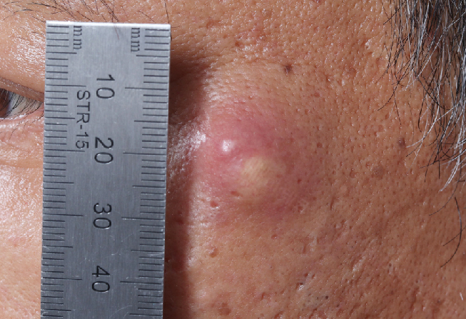 광대 부위에 생긴 약 2cm 가량의 종기를 주소로 내원하였습니다.