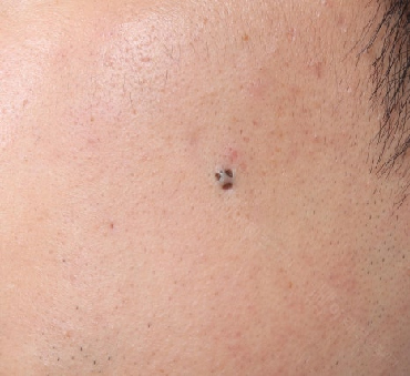 좌측 볼에 지금 약 0.4cm 정도의 덩어리가 있구요, 까만 점이 3개가 보입니다.
