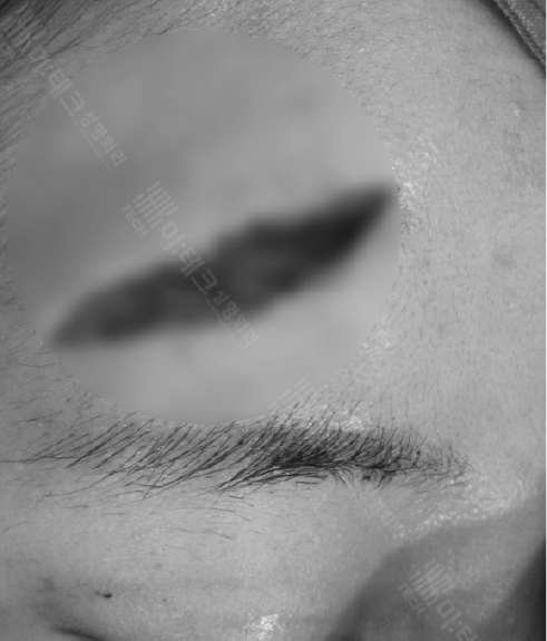 우측 눈썹 위쪽 부위에 대각선 방향으로 약 5.5cm 가량의 찢어진 상처가 있었습니다.