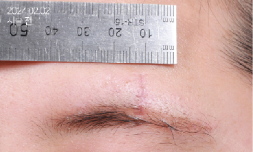 좌측 눈썹 부위 열상으로 타 병원에서 응급 봉합을 받은 뒤,