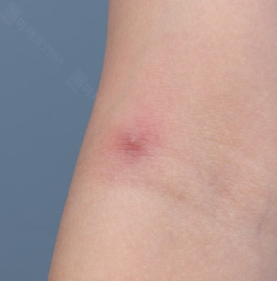 우측 팔꿈치 안쪽에 지름 약 1cm 가량의 붉은 덩어리를 확인할 수 있습니다.