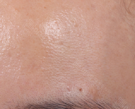 이마에 움푹 들어간 홈 보이시나요? 얼굴 어디서든지 생길 수 있지만, 제 경험상은 이마가 가장 빈도가 높은 것 같습니다.