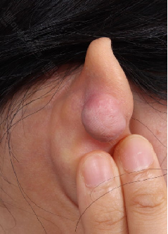 귀 앞뒤로 정상조직 일부를 침범한 켈로이드는