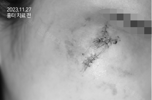 약 1년 정도, 부산주말상처봉합 전문병원인 미테크성형외과에서 흉터레이저 치료를 받고 난 후의 모습입니다.