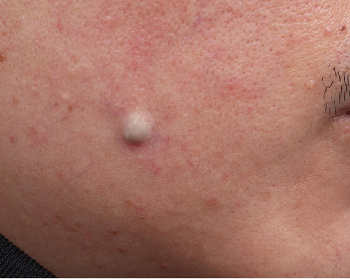 아직 염증 단계에 접어들지 않은 상태인 약 1cm 가량의 덩어리가 우측 볼 한가운데에 있는 상태입니다.
